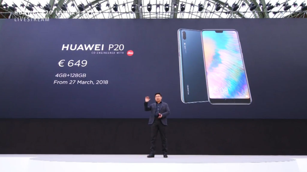 价格上,华为 P20 价格 649 欧元(约 5054 元人民币),4GB 内存、128GB 存储,将在 3 月 27 日出售;